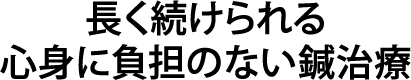 当院では、ストレスなく治療を継続してい頂けるよう、個々の患者さんに合った最適な刺激で鍼治療を行うよう心がけています。