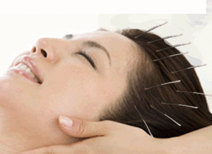 その後、仰向けになって頂いて、首のマッサージを行い、目の周り・お顔に美容鍼を行います。加えて、頭のツボ等に鍼を行い、必要に応じて、刺激を感じるか感じないか程の微弱電流を流していきます(頭鍼パルス療法)。費用は美容鍼とセットで合計10,000円で
